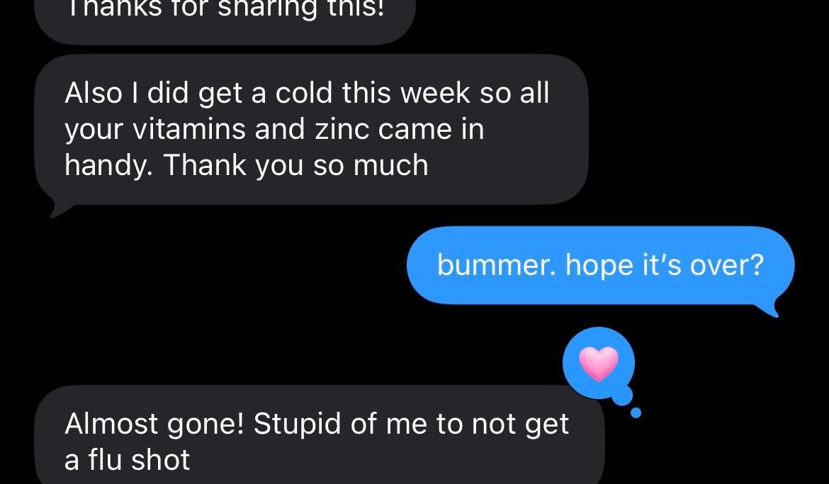 I'm not a doctor. And clearly, neither is my friend who really enjoyed my placebo care plan. But I still got the credit for her immune system kicking in.